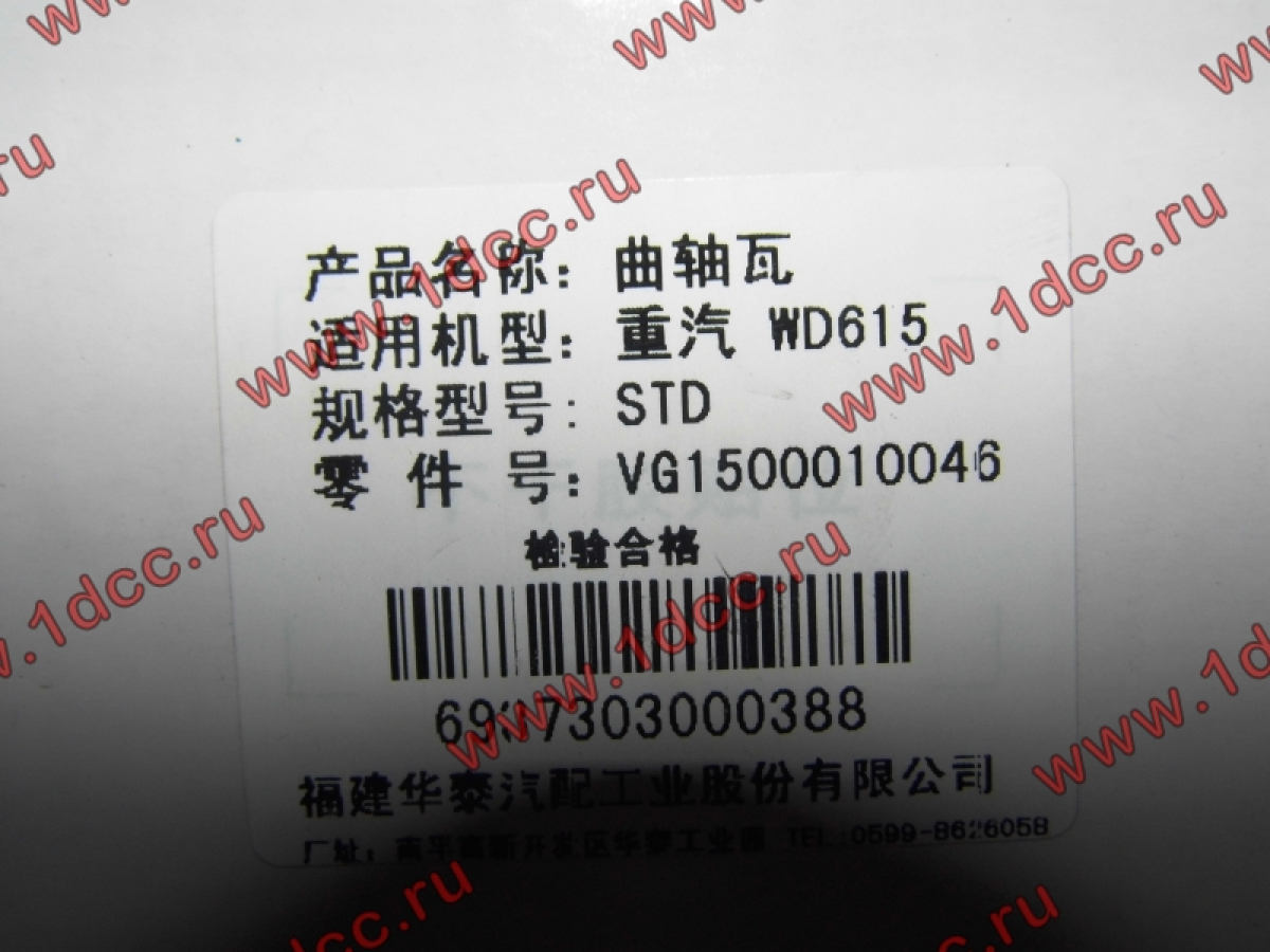 Вкладыши коренные стандарт +0.00 (14шт) H2/H3 HOWO (ХОВО) VG1500010046